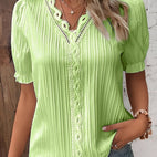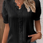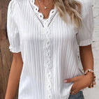 Diese modische Bluse mit V-Ausschnitt besticht durch ihr strukturiertes Aussehen und eine zeitlose, feminine Note. Die schmeichelhafte Passform hebt sanft die Silhouette hervor und bietet gleichzeitig bequemen Tragekomfort im Alltag. Durch ihren lässig-eleganten Stil kann die Bluse vielseitig kombiniert werden – sei es im Büro, in der Freizeit oder zu besonderen Veranstaltungen. Das moderne Design macht sie zu einem echten Allrounder für verschiedene Outfits und Anlässe. Ein vielseitiges Basic für eine modebewusste Garderobe.