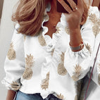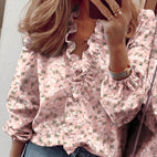 Diese schicke Rüschenbluse zeichnet sich durch ihren klassischen V-Ausschnitt und kunstvoll entworfene Rüschen aus. Die langen Ärmel verleihen dem Design Eleganz, während der leichte, fließende Stoff für ein angenehmes Tragegefühl sorgt. Perfekt für Büro, Alltag oder besondere Anlässe, bei denen ein gepflegtes Aussehen gefragt ist. Die Bluse lässt sich vielseitig kombinieren und passt sowohl zu Hosen als auch Röcken. Ein stilvolles Basic für modebewusste Frauen.