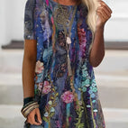 Diese elegante Bluse besticht durch ein buntes Design und eine angenehm weite Passform. Die kurzen Ärmel machen sie ideal für warme Tage und der fließende Schnitt bietet ein luftiges Tragegefühl. Hervorragend kombinierbar mit Jeans, Stoffhosen oder Röcken für vielseitige Outfits. Ob im Alltag oder bei entspannten Anlässen – diese Bluse bringt Farbe in Ihren Stil. Ein modisches Muss für jede Garderobe.