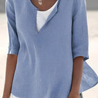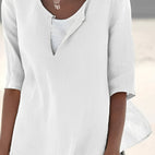 Die Shania Bluse beeindruckt durch ihren trendigen Lagenlook, der jedem Outfit sofort Tiefe und Eleganz verleiht. Der lockere Schnitt sorgt für hohen Tragekomfort und macht sie ideal für warme Tage. Egal ob im Alltag, im Büro oder bei lockeren Treffen – diese Bluse ist vielseitig und wirkt immer elegant und gepflegt. Ein zeitloses Stück für moderne Garderoben.