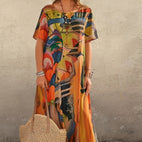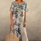 Das „Theresa“ Kleid bringt frischen Wind in Ihre Sommergarderobe. Der lässige Schnitt bietet hohen Tragekomfort und viel Bewegungsfreiheit – ideal für warme Tage. Das stilvolle Allover-Muster verleiht dem Kleid eine lebendige und feminine Note. Ob im Alltag, im Urlaub oder bei entspannten Anlässen, dieses mittellange Kleid ist vielseitig kombinierbar. Ein perfektes Zusammenspiel aus Komfort und Sommermode.Deshalb gehört „Theresa - Lässig geschnittenes, gemustertes Kleid für